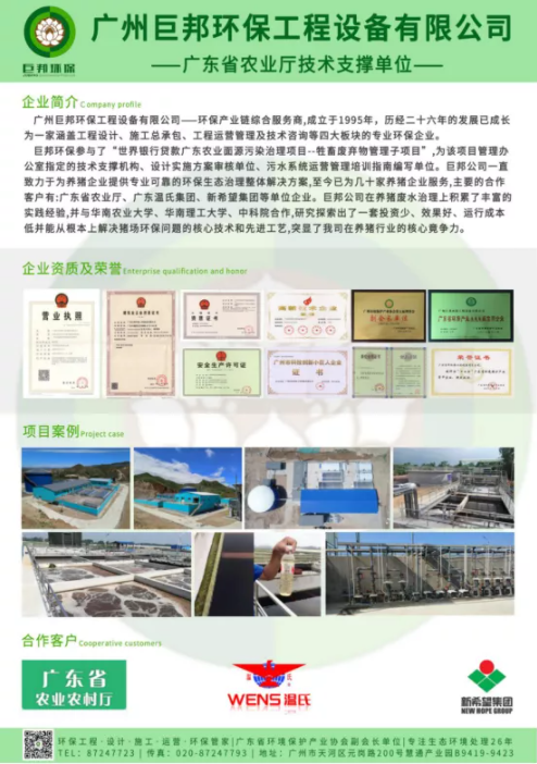 巨邦環(huán)保作為廣東農(nóng)業(yè)廳技術(shù)支撐單位,深耕養(yǎng)殖廢水領(lǐng)域多年,巨邦環(huán)保密切關(guān)注廣東養(yǎng)豬行業(yè)的創(chuàng)新及發(fā)展動(dòng)態(tài),以助力社會(huì)發(fā)展為己任,落實(shí)總書記講話精神,巨邦環(huán)保為支持此次廣東養(yǎng)豬業(yè)創(chuàng)新大會(huì),助推廣東養(yǎng)豬業(yè)創(chuàng)新養(yǎng)殖技術(shù)的交流,使省內(nèi)養(yǎng)豬業(yè)平均養(yǎng)殖水平躍升一個(gè)新臺(tái)階,巨邦環(huán)保特此作為本次會(huì)議的支持單位,助力此次大會(huì)的隆重召開。