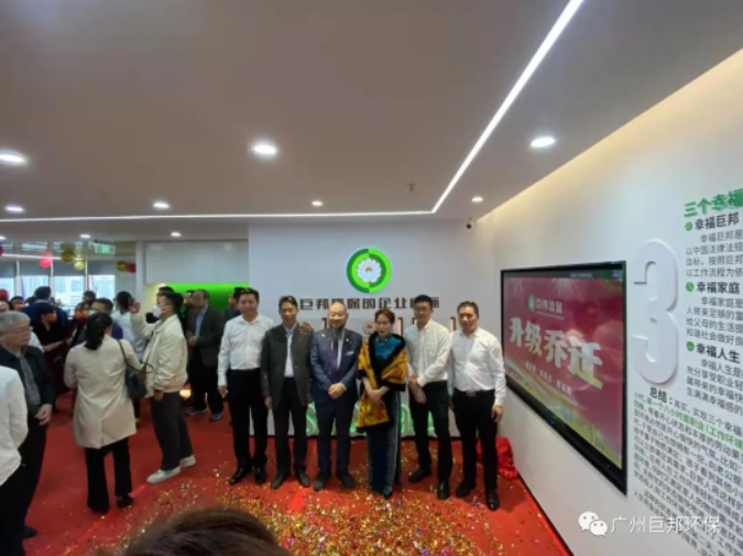 2022年1月22日,廣州巨邦環保科技舉行了盛大的升級喬遷慶典,廣東環境保護產業協會秘書長易頌輝、廣東省環境科學學會副秘書長陳桂紅、廣州環境保護產業協會秘書長江有才、廣東工業大學教授陳凡植,全國優秀律師蘇祖耀,廣州市信宜商會高級顧問、信宜中學廣州校友會會長劉強等領導、專家、嘉賓、新老客戶及行業同仁到場致賀!