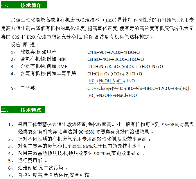加強型催化燃燒高濃度有機廢氣治理技術...