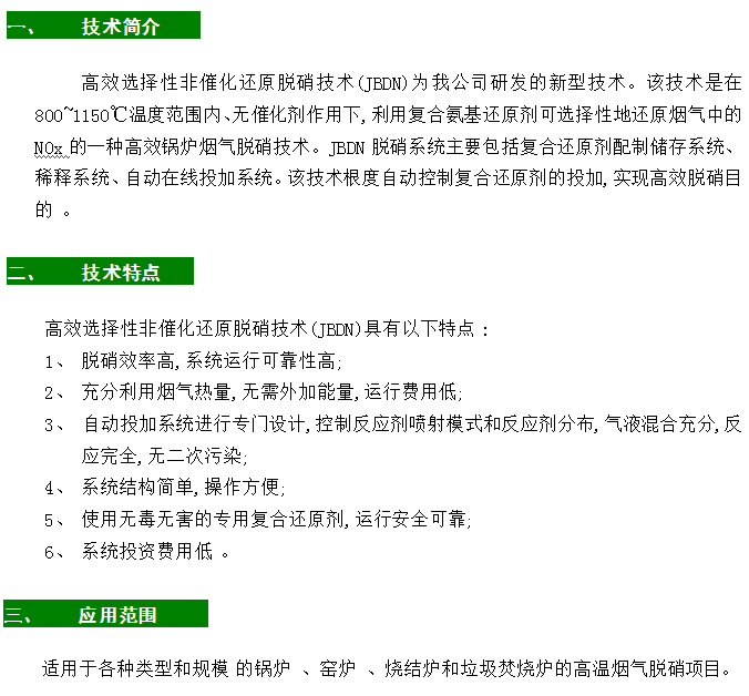 高效選擇性非催化還原脫硝技術(shù)(JBDN)